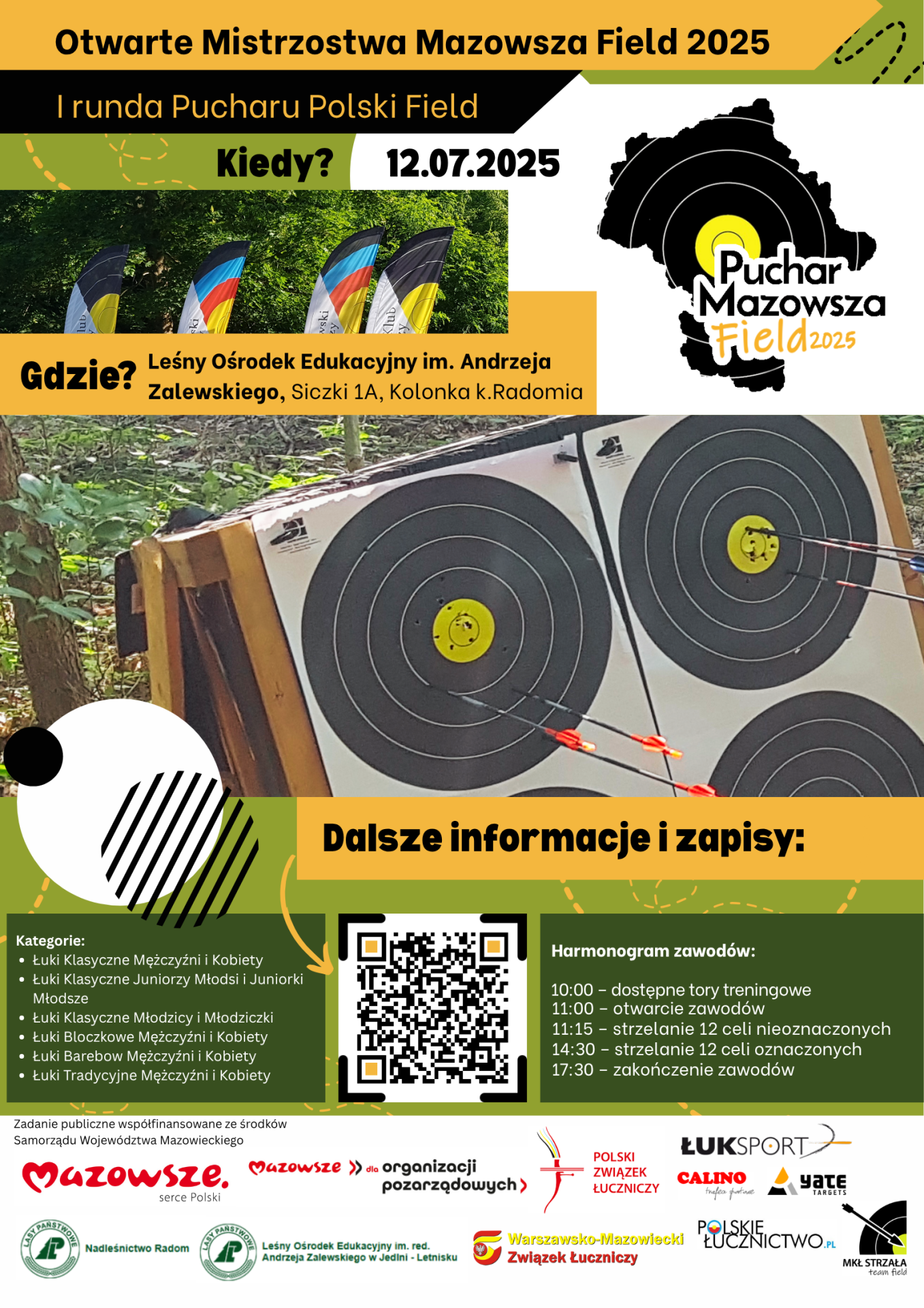 W dniach 12-13 lipca 2025, w pięknej scenerii ścieżki przyrodniczo-leśnej w Rezerwacie "Jedlnia" koło Radomia, odbyły się Mistrzostwa Mazowsza Field w ramach cyklu „Field w Centrum Mazowsza”. Zawody odbyły się w formule skróconej tj. w oparciu o kwalifikacje na 12 celach nieoznaczonych oraz 12 celach oznaczonych, bez rundy eliminacyjnej.