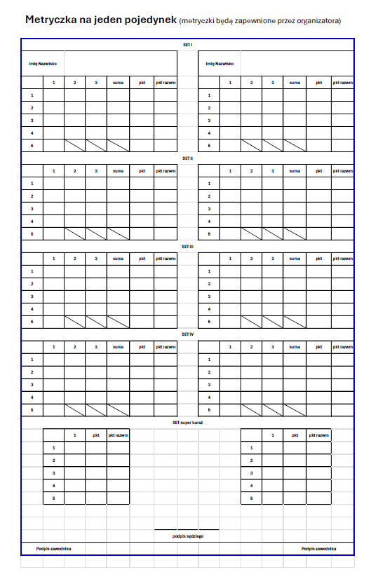 Jeden pojedynek będzie się składał z 4 setów (4 pojedynki